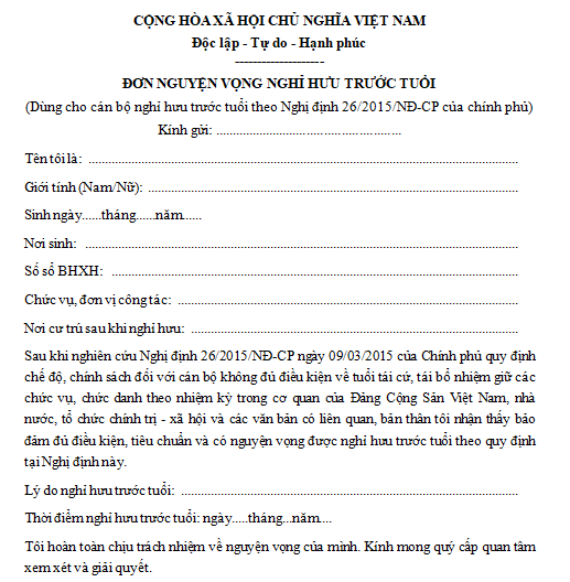Mẫu đơn xin nghỉ hưu trước tuổi
