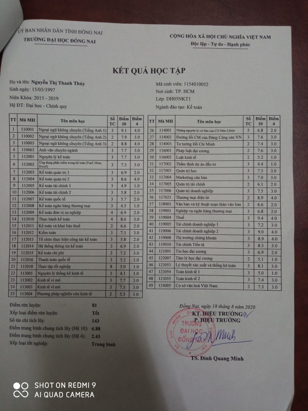 | Họ và tên | Nguyễn Thị Thanh Thủy | |